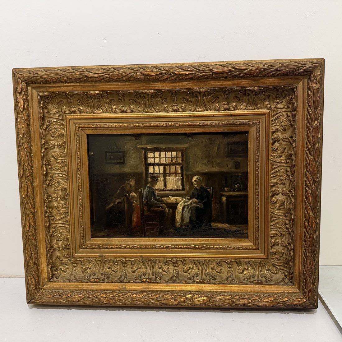 Bij het gezin in huis, Gerke Henkes (1844-1927) Olieverf op eikenhouten paneel met een goudkleurige houten omlijsting. Gesigneerd, rechtsonder. Afmetingen: 18 x 26 cm Inclusief de omlijsting: 36 x 43 cm In goede staat. Ik, , ben geïnteresseerd in Bij het gezin in huis, Gerke Henkes (1844-1927) en wil er graag meer over weten. U kunt mij een mail sturen naar . Gelieve dit veld leeg te laten.